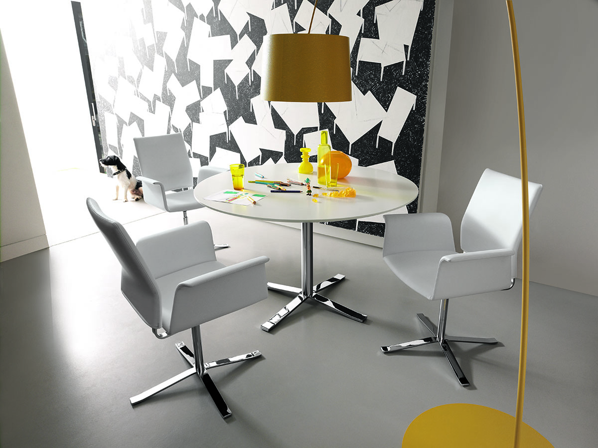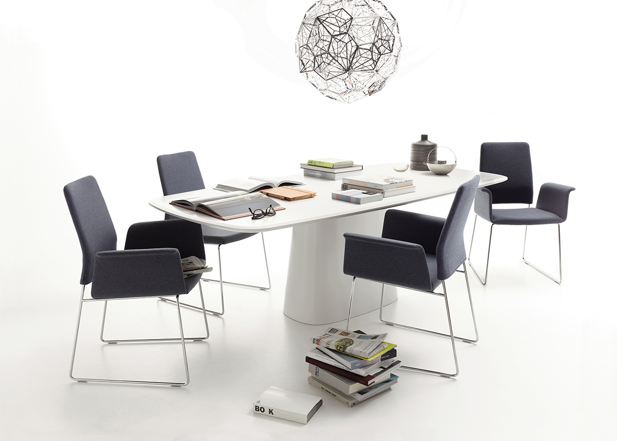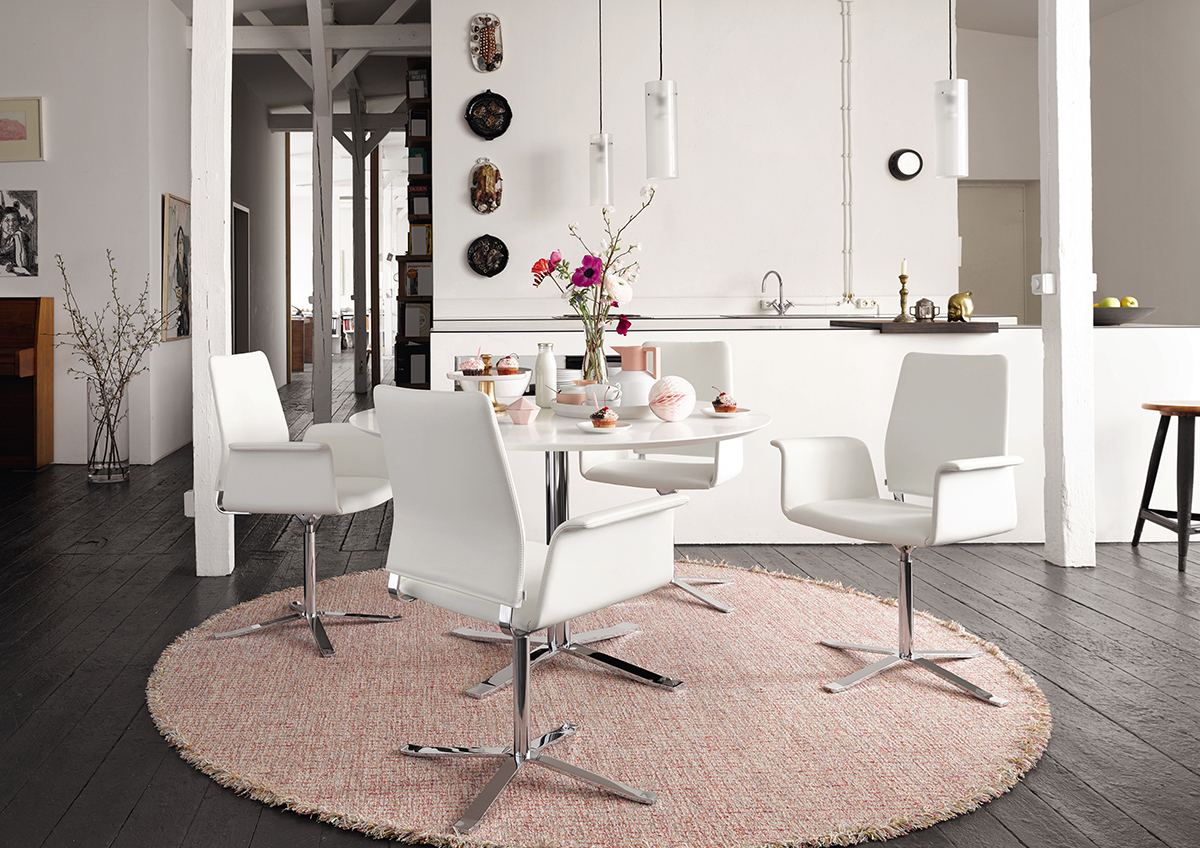 Warum entscheiden, wenn man das Beste aus zwei Welten haben kann?, fragten sich die Designer von Jehs + Laub und entwarfen diesen sesseligen Stuhl mit der edlen, matten Schale und den gemütlichen Sitzpolstern. Er ist so weich, dass man in ihm schier endlos am Esstisch sitzen kann. Und weil es ihn außerdem in zig Variationen gibt, stellt er wirklich jeden Geschmack zufrieden.