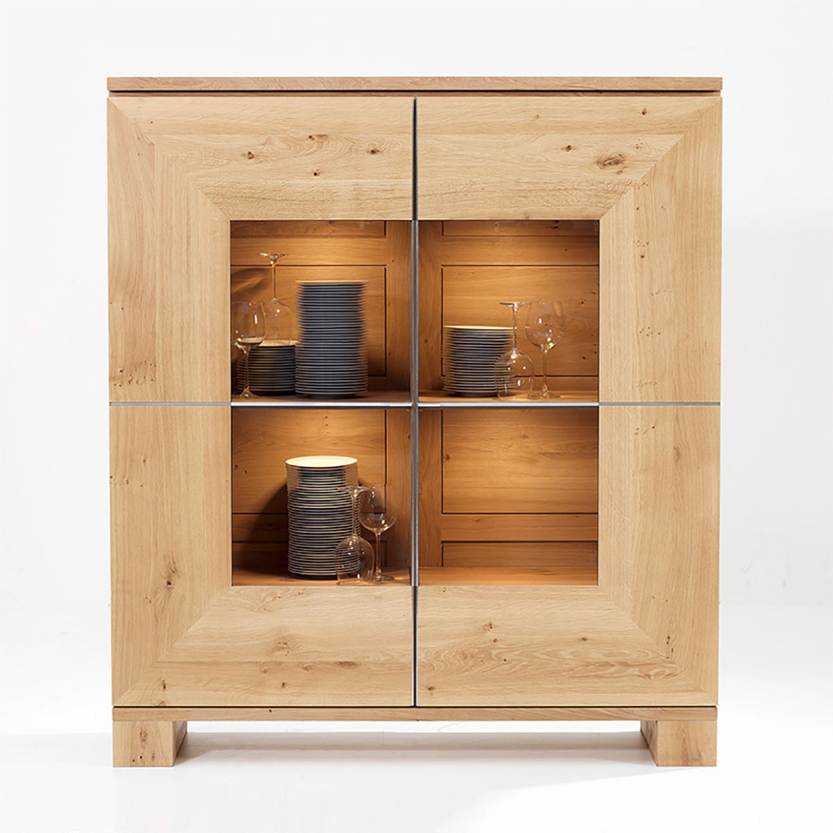 Das klare Design unserer Collection VARUS wurde von uns mit Augenmaß auf den Punkt gebracht - der Formgebung, den Proportionen sowie dem Materialkontrast haben wir nichts mehr hinzuzufügen. Die Auswahl an verschiedenen Edelhölzern und Glasfarben ist nahezu unerschöpflich. Helle Hölzer, wie knorrige Eiche oder schlichte Eiche Puro geölt sowie verschiedene Kirschhölzer lassen sich ideal mit dunklerem, mattiertem Glas kombinieren, während Nussbaum eher helle Glasflächen umrahmen sollte.