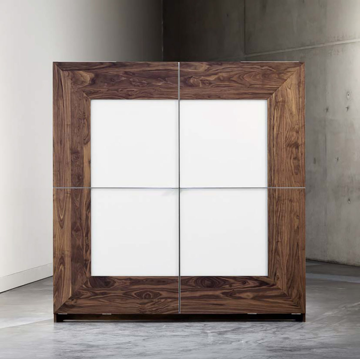 4 Glas-Quadrate + Edelstahlkreuz + Massivholz-Rahmen auf 45°. Das ist das Design unserer Korpusmöbei-Collection Varus - ein stimmiges Möbel, das sich wie ein Bild an der Wand in den Raum einpasst - für uns eine Legende im Sinne der Zeitlosigkeit... Varus verbindet die Kunst handgefertigter Möbel mit Stilzitaten der Möbeltradition des Osnabrücker Landes. Die Klarheit des Designs prägt die Korpusmöbel der Kollektion und gibt ihnen den Ausdruck von Großzügigkeit und Wert.