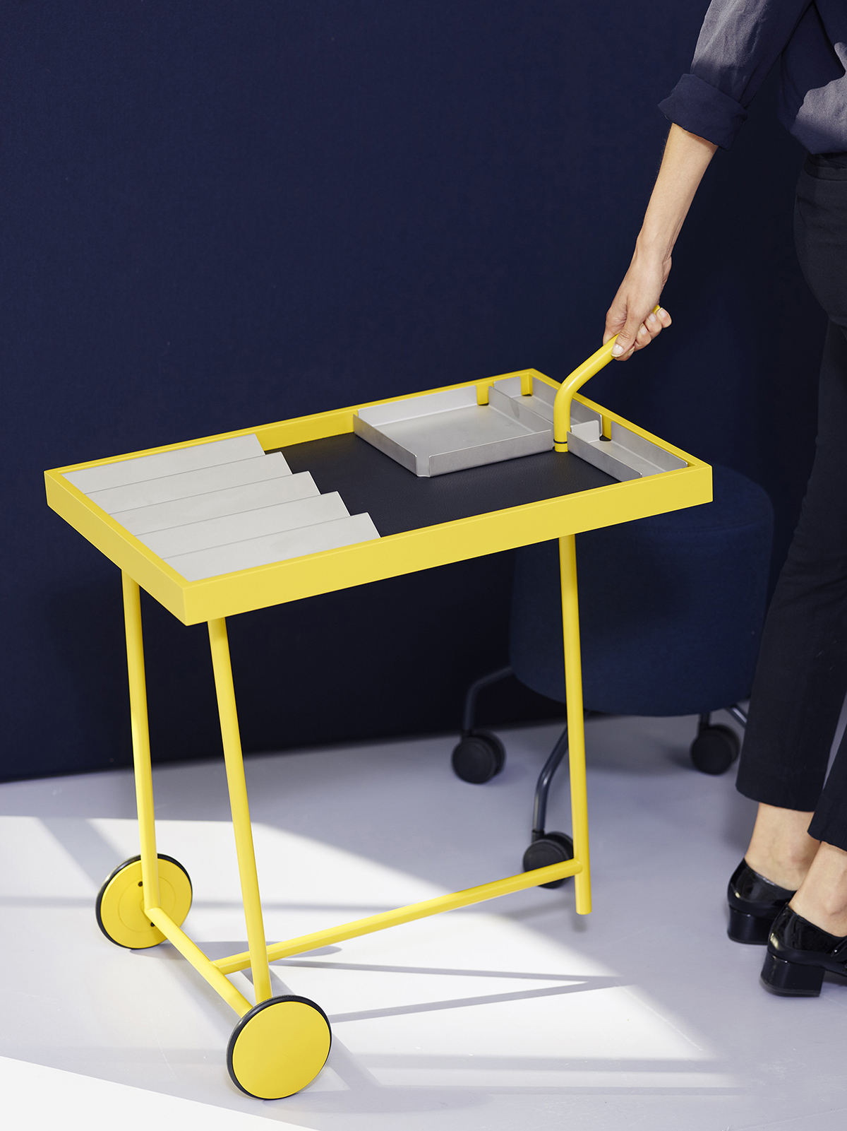 Inspirierend war ein Blick in unsere eigene Werkstatt, mit all den unterschiedlichen Wagen und kleinen, hilfreichen Vehikeln. Diese mobilen „Möbel“ werden von allen genutzt und gehören nicht zu einem festen Arbeitsplatz..
