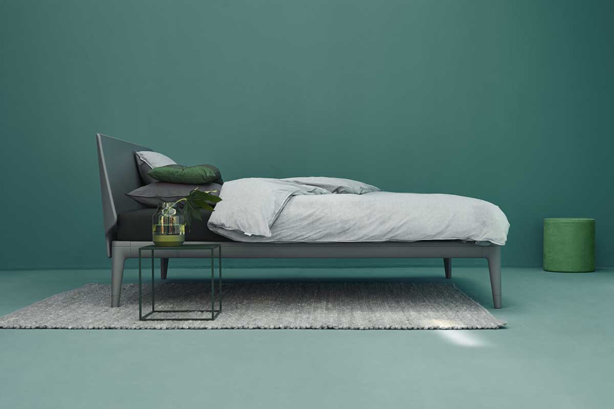 Das moderne Design des Essential bringt Ruhe in jedes Schlafzimmer. Es basiert auf einem robusten, aber dezenten Aluminiumrahmen. Die weiche, abgerundete Form des Kopfteils gibt dir ein sicheres und geschütztes Gefühl. Die Rundung spiegelt sich auch in den passenden Beistelltischen und den Bettfüßen wider.